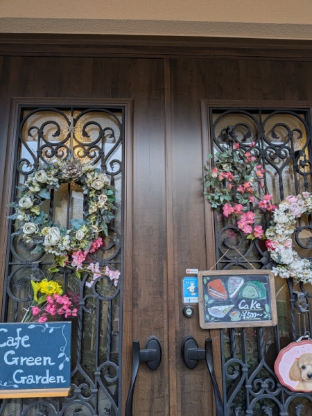 入り口のドアも春色に💮
